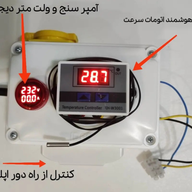 این سنسور قطع کن بادی دارای آپشن های جدید میباشد: ✅1.کنترل از راه دور اپلیکیشنی که میتوان از هر جای دنیا از طریق اینترنت دستگاه را خاموش.روشن و یا تایمر داد. ✅2.ترموستات دیجیتال اتومات سرعت فن حلزونی که سرعت فن حلزونی را با توجه به دمای دستگاه به صورت اتومات کم و زیاد میکند و دارای نمایشگر دیجیتال دمای دستگاه است. ✅3.نمایشگر دیجیتال آمپرسنج و ولت متر که برق مصرفی دستگاه ماینر را نشان می دهد.